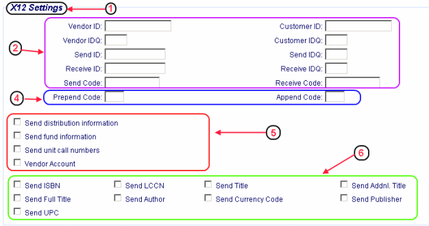 These fields apply only when configuring the X12 Purchase Order Settings for Brodart. These settings should not be used when configuring other vendors. |